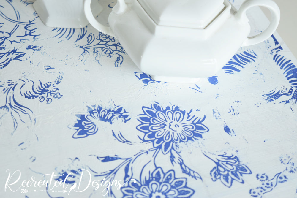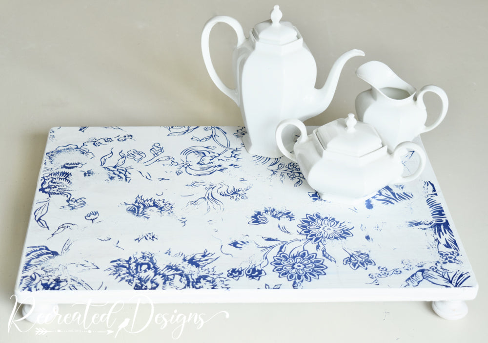 You will be able to choose from two Inlay designs; Rose Chintz or Indigo and a background colour from Fusions' line of mineral paints so you can make this a truly unique tray.