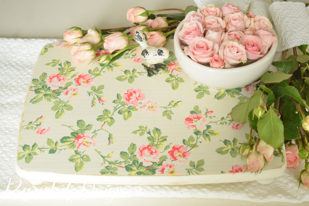 to transform a cutting board into a beautiful raised tray that you can use in so many places from your countertop to your dining table and everywhere in between.