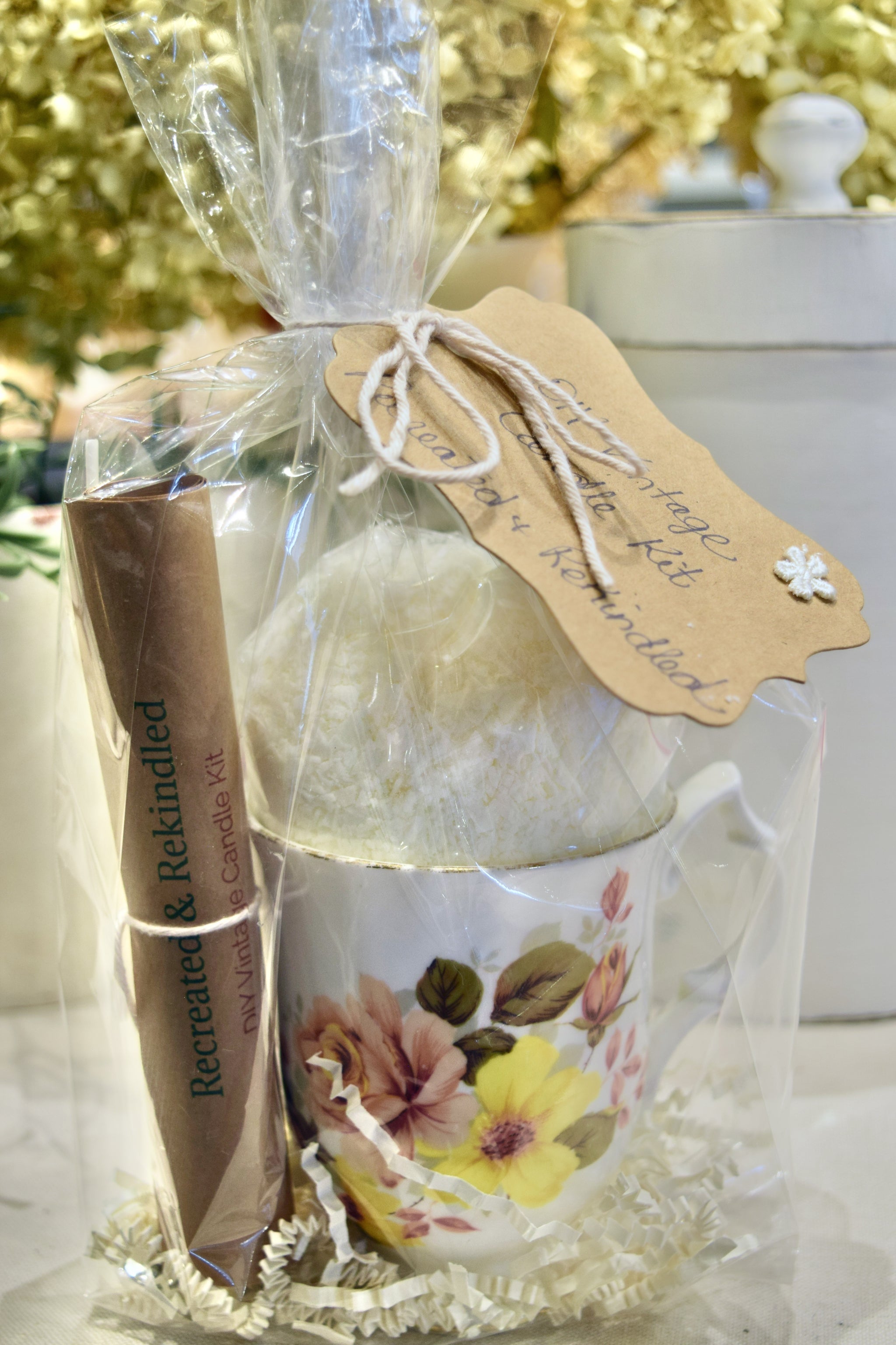 Bring warmth, creativity, and a touch of vintage charm into your home with our one-of-a-kind DIY candle kits. Each kit features a carefully selected vintage teacup, soy wax chips, wick, and step-by-step directions; everything you need to create your own beautiful candle.