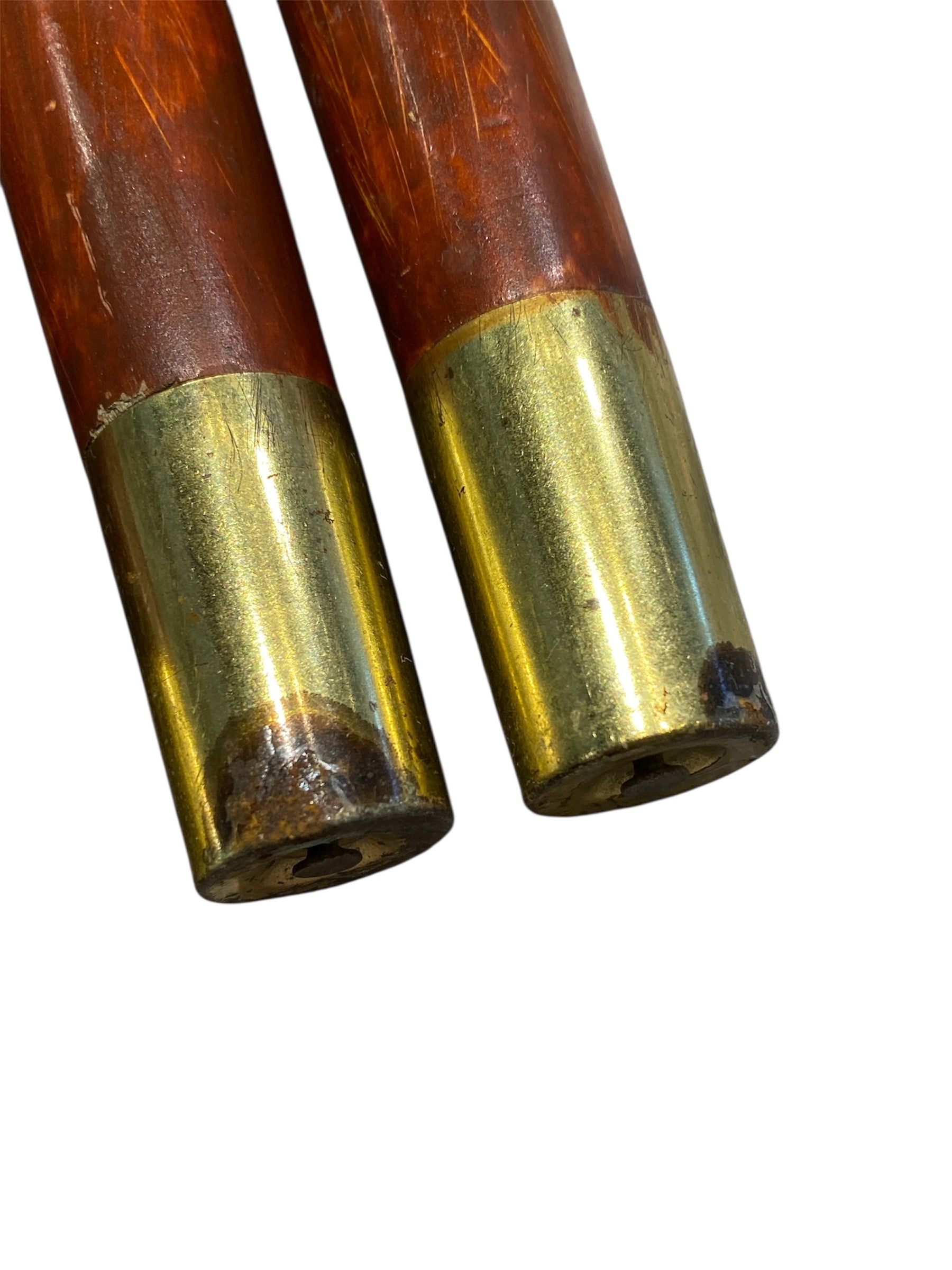 A set of 4 long reclaimed, solid wood, mahogany coloured table legs. These legs would be perfect for a reclaimed table or upcycling project. They have some wear and tear (see pictures).