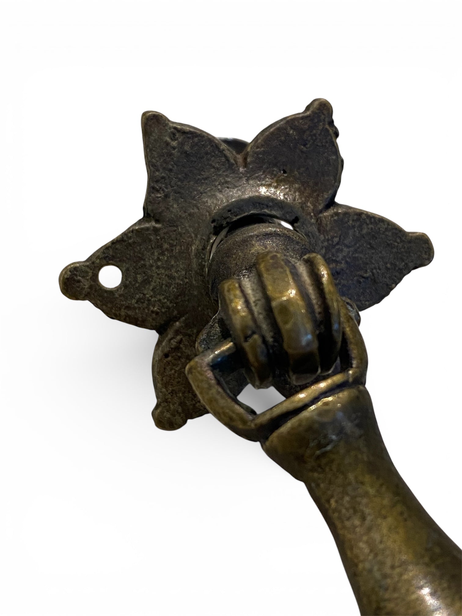 Antique cast brass teardrop pulls with a flower back plate. Please note that there are no tiny nails for the back plate but there is a screw (see pictures)